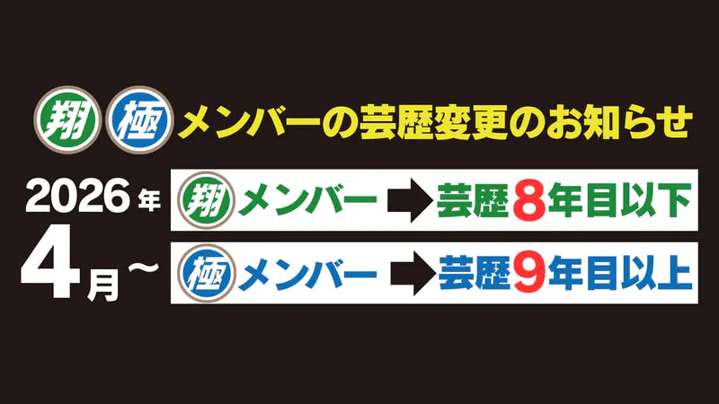 2026年4月から「翔メンバー」「極メンバー」の芸歴を以下の通りに変更いたします。